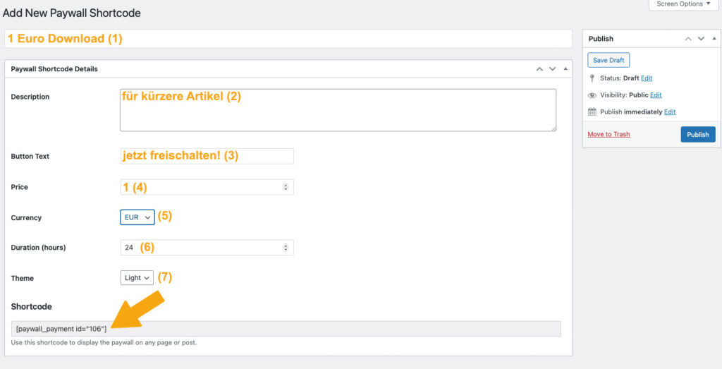 As soon as you have finished the article, you must place the shortcode you have just produced at the point where you expect payment from your reader. You usually do this after the introductory paragraph, see right: